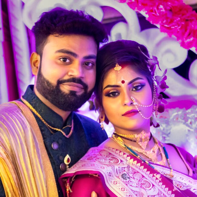 We specialize in weddings, receptions, baby shoots (like annaprashan), pre-wedding, family events, and professional portraits.